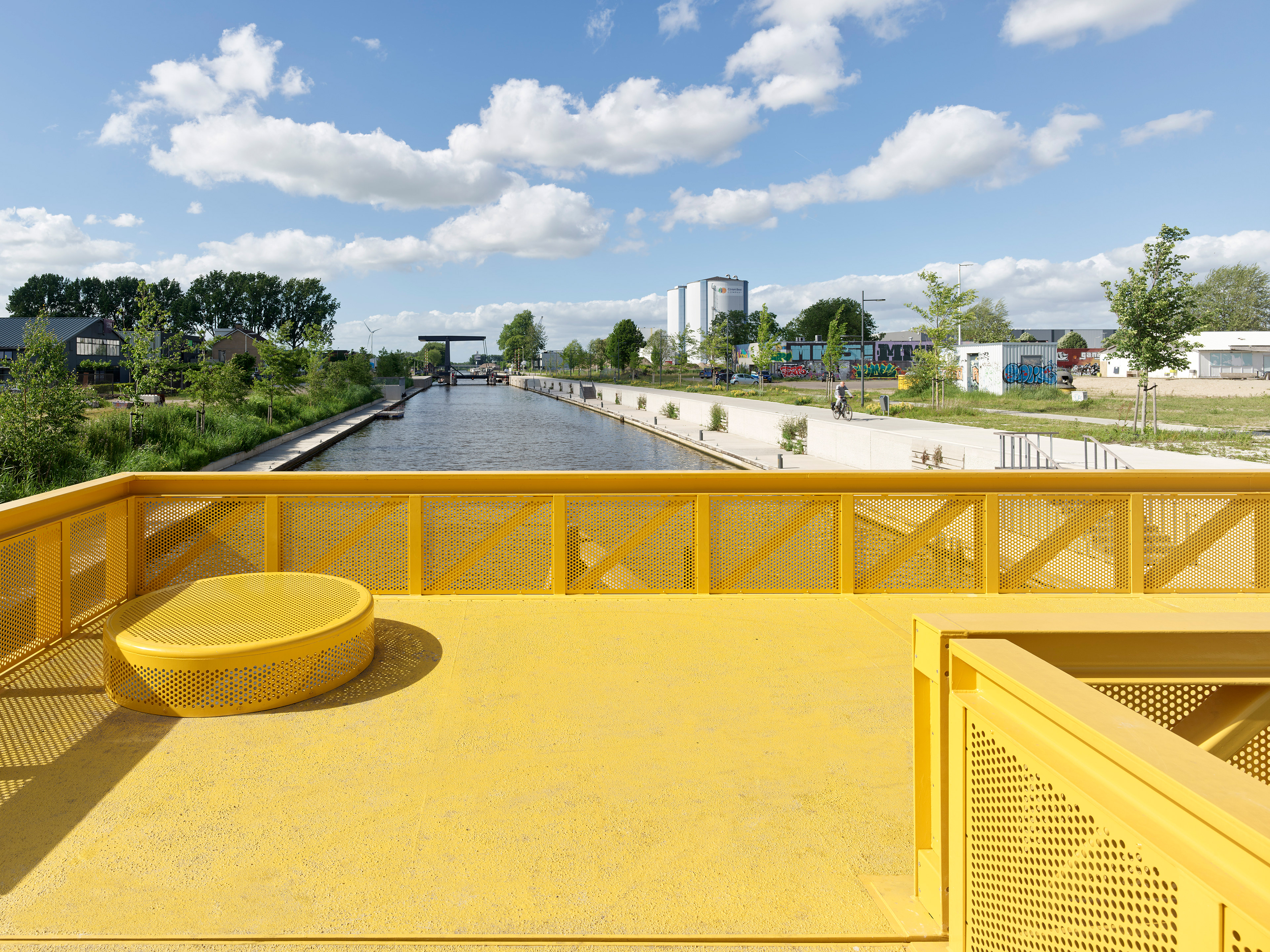 Het ontwerp van de brug eert het industriële verleden van de locatie, zonder nostalgisch te zijn. Het zichtbaar maken van de techniek verhoogt de objectwaarde van de brug en verankert de brug in haar omgeving. De kleurstelling draagt expliciet bij aan de identiteit van brug en gebied. Geel is als signaalkleur onderdeel van de maritieme omgeving en voegt een onderscheidende kleur toe aan het kleurpalet van het gebied zonder deze te willen overschreeuwen.