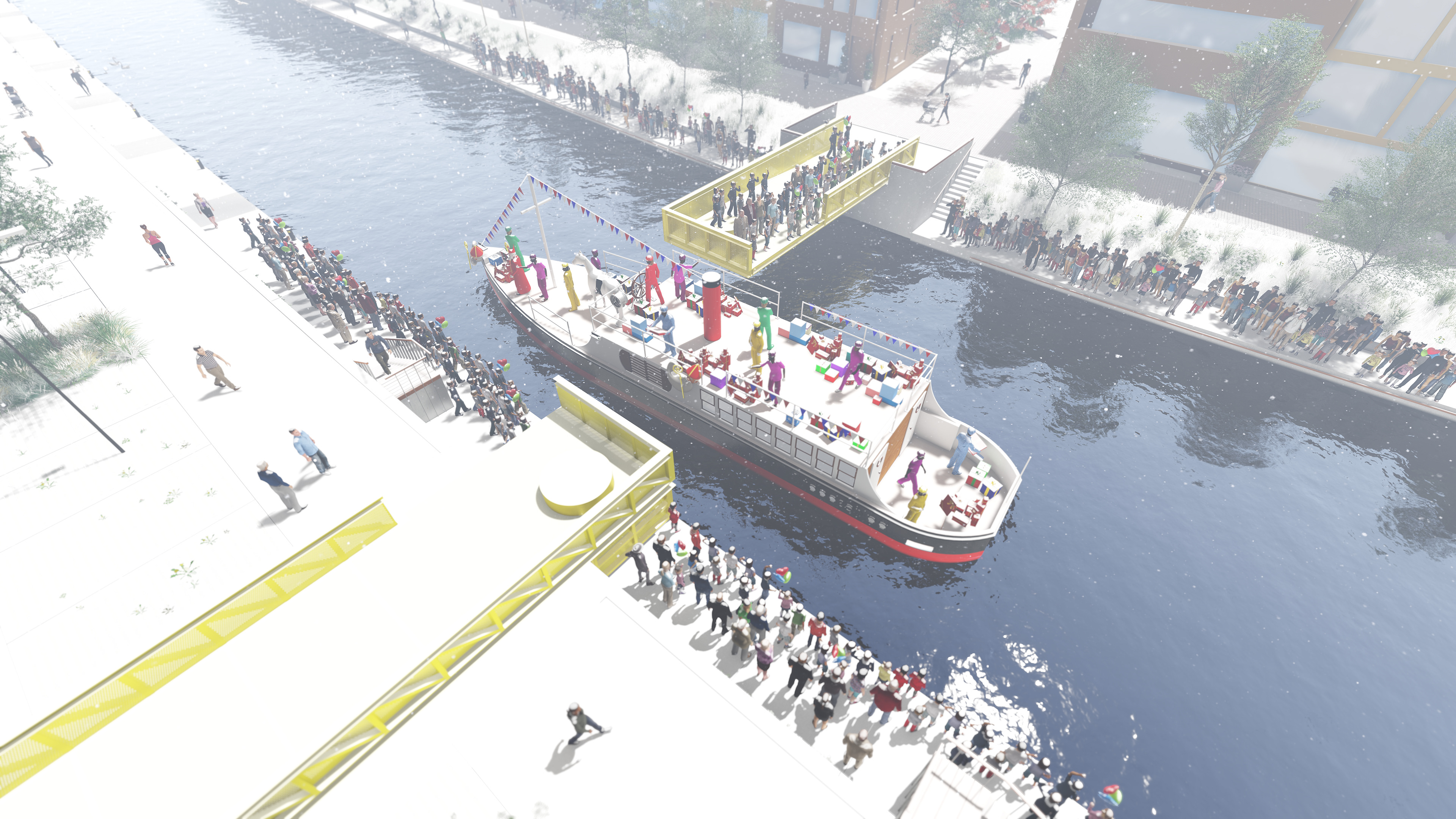 Om de ambitie van de gebiedsontwikkeling gestalte te geven, is op deze locatie gekozen om eerst de openbare ruimte aan te leggen en daaropvolgend de kavels te ontwikkelen. De rolbrug vormt een scharnierpunt in deze ontwikkeling; logischerwijs als verbinder van de kades, maar zeker ook als aanjager van de nieuwe identiteit van het gebied.