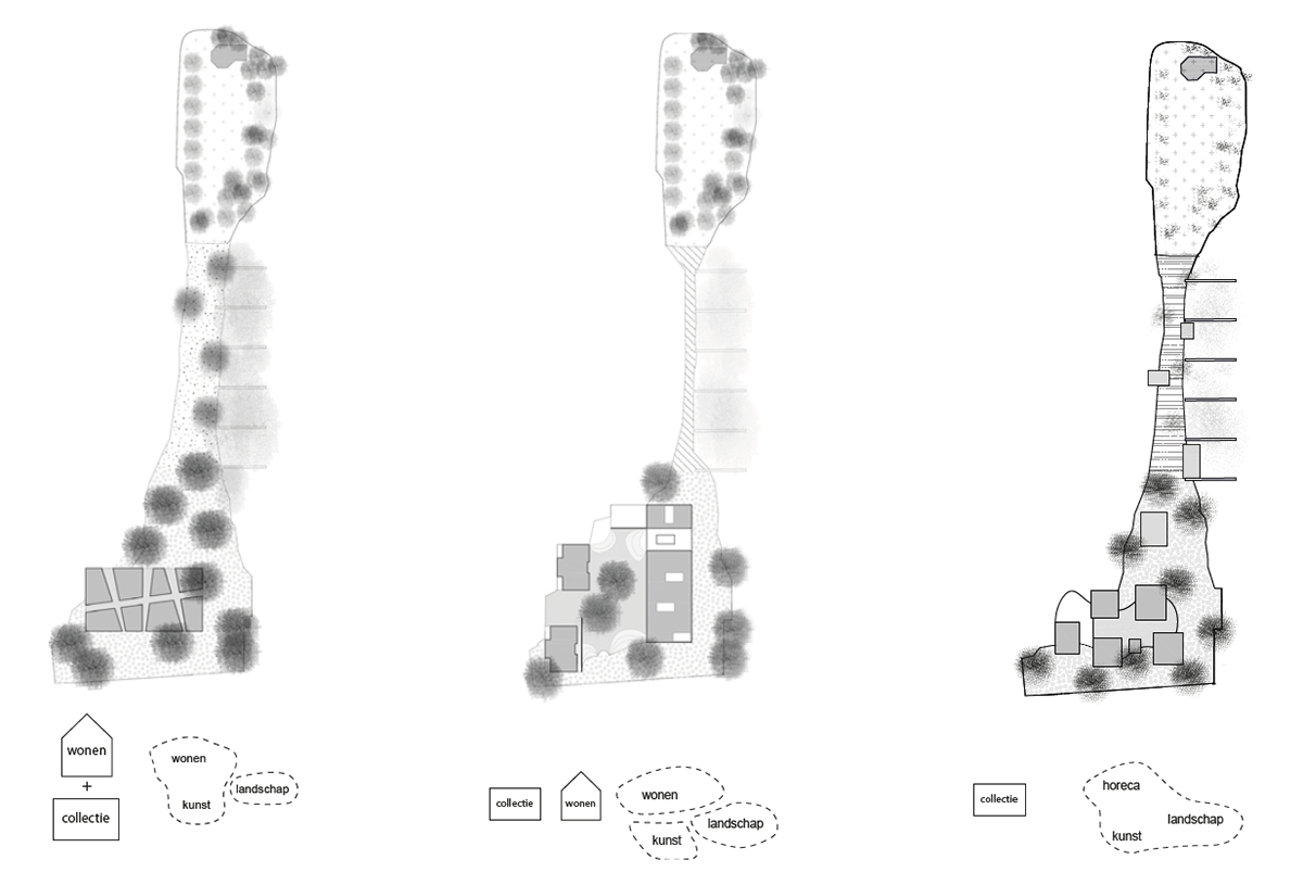 Na het winnen van de prijsvraag is het team gevraagd om de inzending verder te onderzoeken. De ruimtelijke verkenning spitst zich toe op twee aspecten. Enerzijds de omgang met het terrein en anderzijds de mogelijkheid om op dit terrein de culturele bestemming te combineren met wonen of horeca.