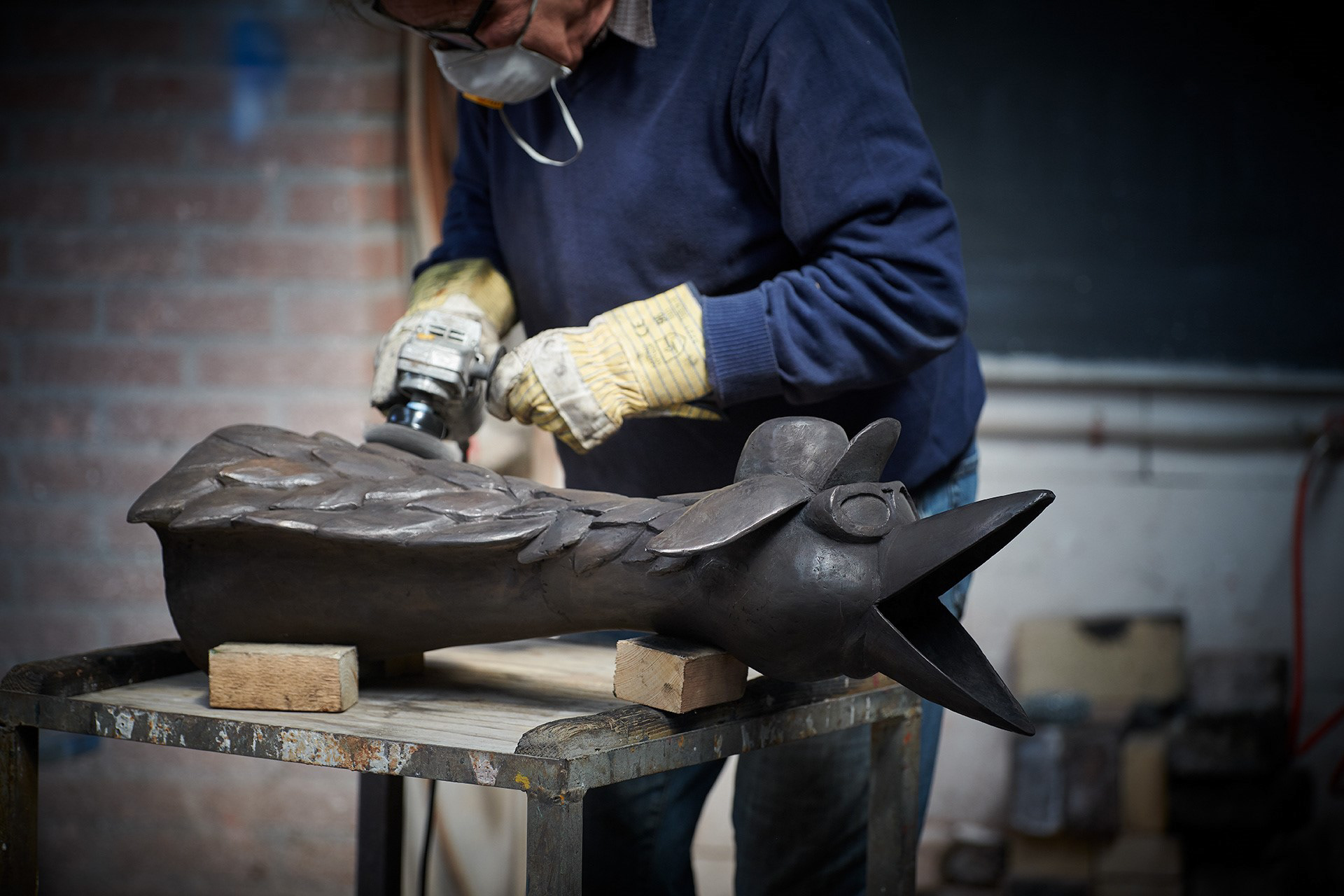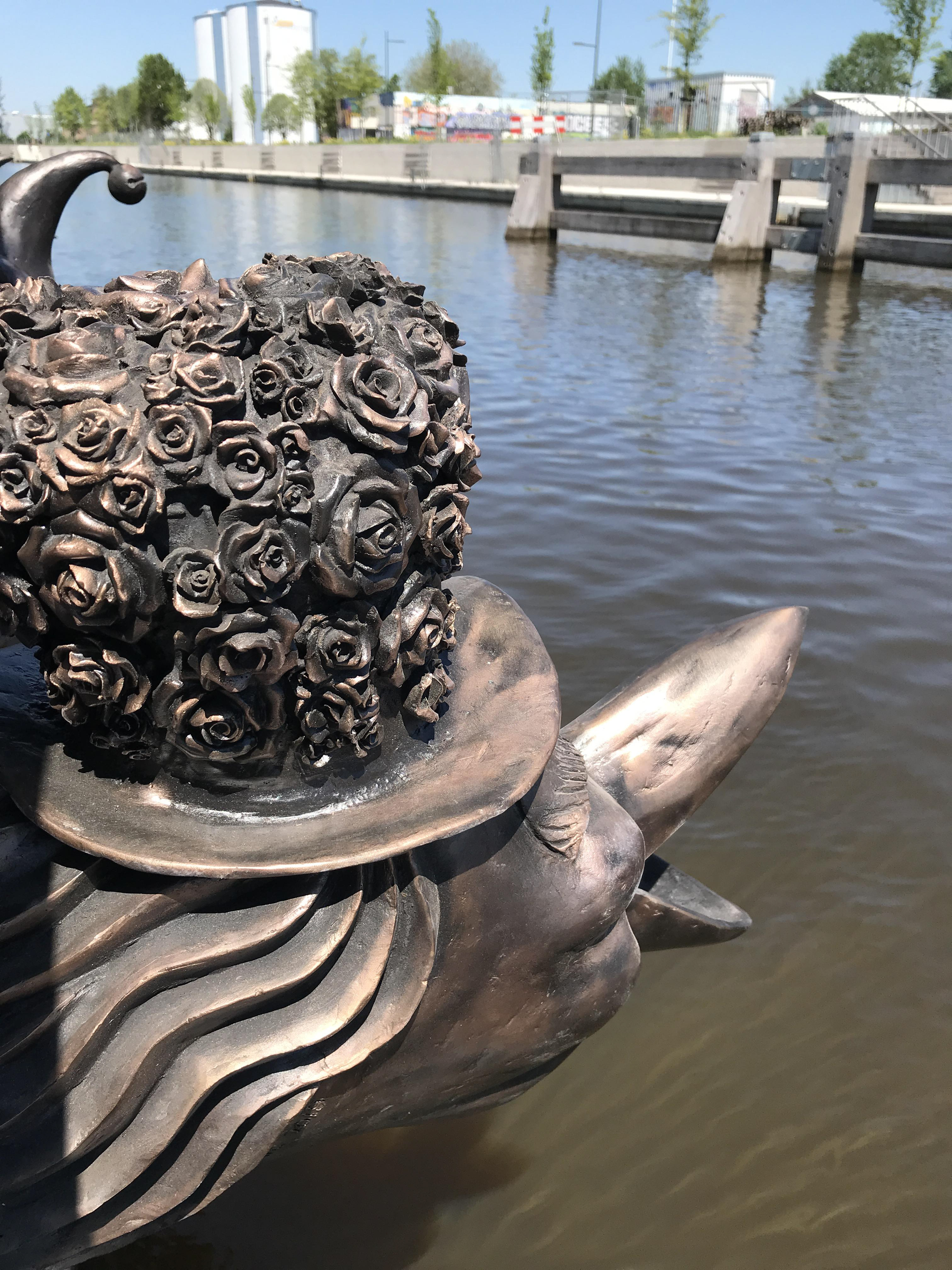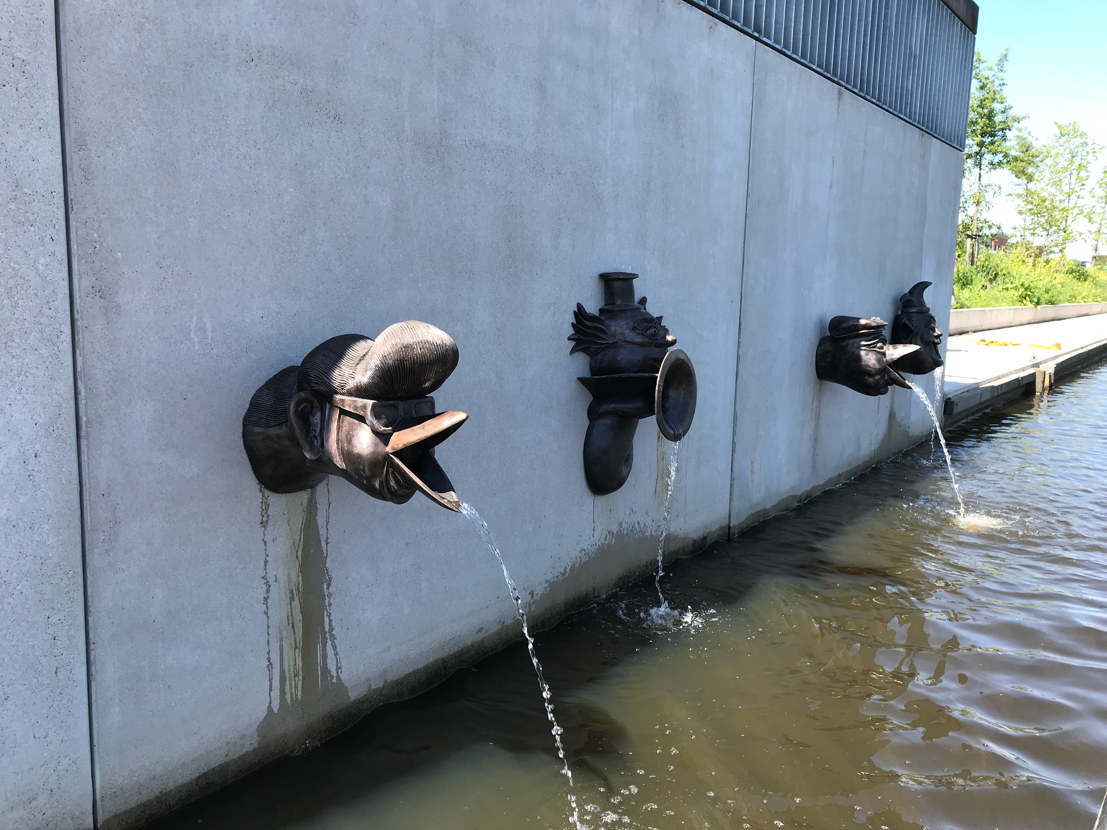 Hoe vrolijk wil je het hebben? 11 Tullepaonne als waterspuwers langs de Roosendaalse Vliet in Stadsoevers geven het hoogstedelijke karakter van de wijk zijn Roosendaalse trots en eigenzinnigheid